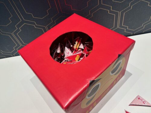 今まで使っていた抽選箱は、ただの箱に付箋を折って入れたものだったのですが
