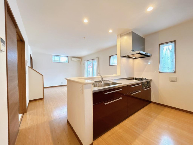 | 設備 | 都市ガス、電気、上水道、下水道、システムキッチン、給湯、洗面台、エアコン、フローリング、庭、駐車3台以上可 | ||