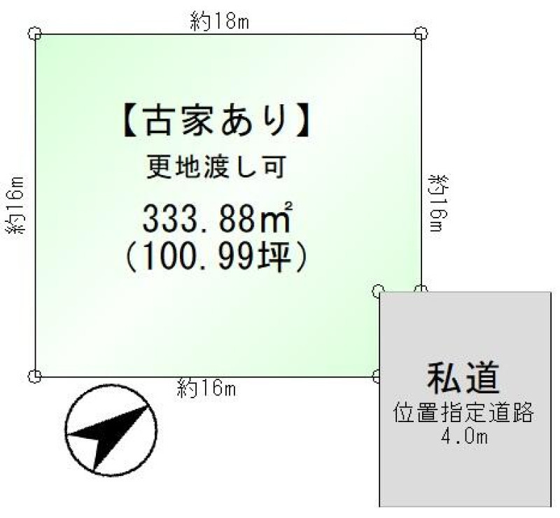 | 土地面積 | 333.88㎡(公簿) | 私道面積 | 私道負担面積有 66㎡ |
