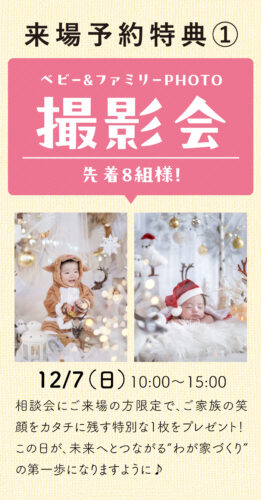 また、7日(日)限定でベビー&ファミリーphotoを開催!クリスマス仕様でプロがかわいく撮影いたします。