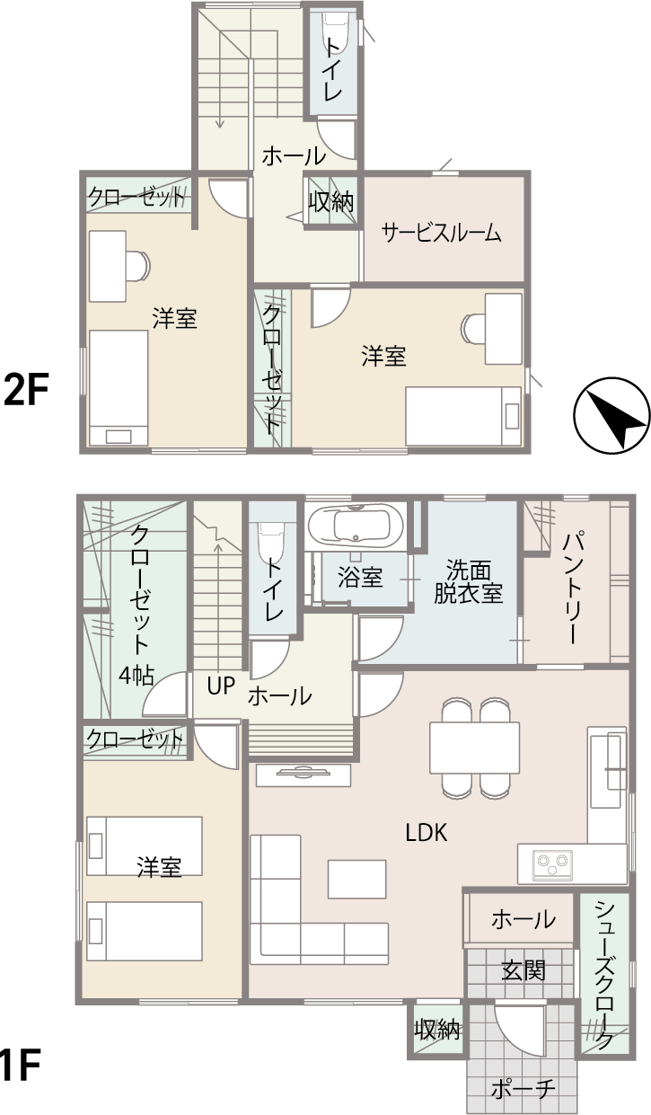 パントリーとクローゼットがかなりの大容量です。2Fのサービスルームはこもり感もあり楽しい時間を過ごせます。
